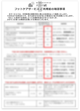 この確認事項をフットケア予約時と施術前の2回確認することで、フットケアによる事故を防ぐ対策を行なっています。
